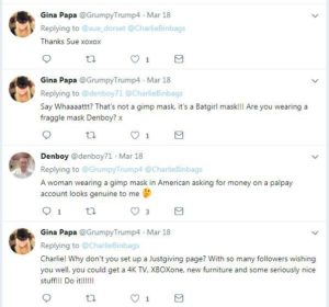 Posted (then deleted) fundraising info for ‘Donna’ on one of @CharlieBinbags tweet threads: